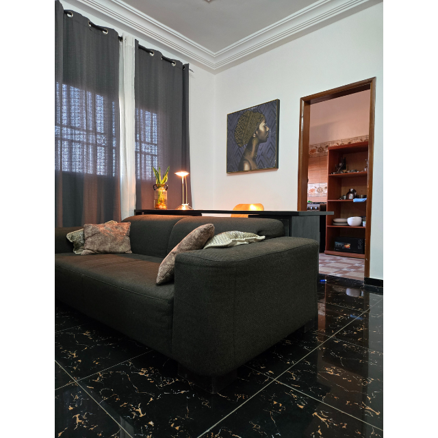 Our furnished apartments in Damas, Yaoundé, located in a quiet and highly secure residential area. This location is perfect for guests seeking peace, convenience, and quick access to the main road network. With an excellent road system, you can easily reach commercial, administrative, or tourist areas.